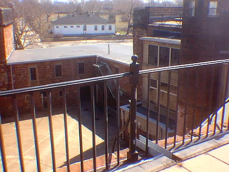 Looking down at Castle Williams prison yard #4 -- 41st of 74 views in NYCHS Governors Island prison history virtual tour. To NYCHS home page © Copyright 2006 New York Correction History Society. Images & text. Non-commerical educational use with source credit permitted. |