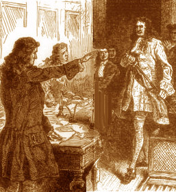 In 1695, Capt. Kidd returned to privateering. But some incidents were used by enemies of his London backers to embarrass them, causing withdrawal of support. He returned to NY seeking help. His ex-associate Governor Lord Bellomont had him arrested (right). Kidd was sent in chains to England where he was tried. Modern historians have questioned the fairness of the legal proceedings and the sufficiency of the reputed evidence.