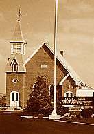 Before the Reformed Church in America at Owasco Outlet (right) was built circa 1810, open field services were held in the Aurburn, N.Y. area by missionary ministers including Jane Riker's husband, the Rev. Asa Hillyer.