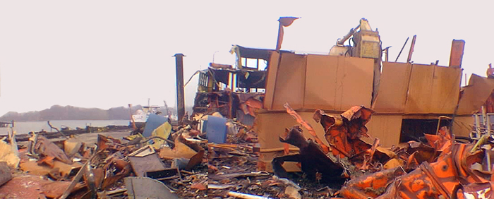 The Merrell/Wildstein was purchased by a Bayonne company for scrap, brought to the waters of the Kill Van Kull separating Staten Island from New Jersey, and placed alongside a pier about July 2003.