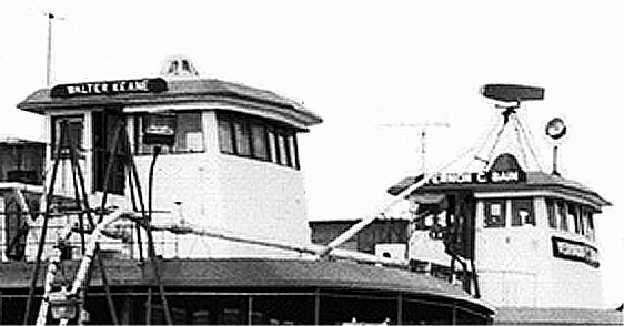 The above photo was taken by ferries historian Cavorley from Shooters Island in the Kill Van Kull as the ex-Walter B. Keane was being docked in Mariners Harbor, Staten Island, in September, 2004. Metal Management Inc., a company unconnected to the salvage firm in the sunken Merrell/Wildstein ferry case, bought the ex-Kolff/ex-Keane for scrap value from a Queens financier who had purchased it from NYC in the Spring of 2004.