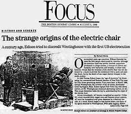 ![]() A gibbet -- perhaps similar to the example shown above from Genesee County, N.Y. -- apparently was employed in hanging executions at Brooklyn's Raymond Street Jail and NYC's Tombs. Such a device was operated by using a counter weight, which when released, caused the rope to pull the noosed condemned criminal up with such sudden force as to break the neck (if done correctly). When done incorrectly -- as in the 1884 execution of Alexander Jefferson at the Raymond St. Jail -- the neck did not break, the condemned man slowly strangled to death. His agonized sounds and violent motions turned what was meant to be a solemn event into a horror show. Such occurrences prompted authorities to seek a more humane method. They were persuaded the electric chair fit that purpose. |