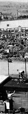 It is instructive to compare the staff rules to the inmate norms regarding the exclusion of a court member. In his 1957 study of the courts, Mancusi [#9] asked a sample of court members: "For what reasons might you drop or put off one of your court members?" Stealing on the court, homosexual acts, fighting and frequent arguments were the most frequent responses. The disparity between staff and inmate rules suggests that, while inmate norms serve to protect the court from internal strife and the threat of staff intervention and expropriation, staff rules may largely be accounted for in terms of maximizing social control through visual observation, the monitoring of membership, the legitimation of the inmate court hierarchy, the explication of eminent domain, and the monopolization of rewards. In short. the staff rules proscribe behaviors that would diminish their control and the inmate norms proscribe behaviors that would diminish their autonomy. This split in the transactional groundrules of the courts is important, and it will turn up later in our discussion of the courts functions and meanings. It is clear that the courts pose certain problems for the staff. We have suggested that in part these problems spring from the location-finding difficulties of irregular shape, the high potential for concealment of illegal acts or contraband, problem of "lost" inmates and the monitoring of inmate sociations, the creation of "valuable" property and the attendant threat of internecine conflicts. To be sure, there are payoffs for the staff from the courts. But the question that arises in our minds is how the courts came into existence and how they grew to the status of a legitimate institution. Some commentators have described the appearance of the courts as a "hobo" encampment; inmates may themselves refer to the courts as "the Jungle." The appearance alone, in other words, would tend to suggest that special factors and a gradual evolution may have been at work. Few administrators would create such a space by fiat or on the spur of the moment; additionally, there are several important prerequisites, which probably became available over time. Thus, we turn next to what can be gleaned about the history of the courts. The doors of inmate spaces in total institutions inevitably lock from the outside rather from the inside, if they lock at all. From the perspective of the staff, in other words, all inmate spaces are public. Thus, the inception and evolution of the courts is an important element in the analysis of the "deviant case" of private property in a total institution. |