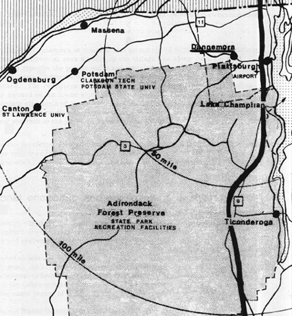 showing Dannemora and Plattsburgh in relation to other major locations in its region of NYS.