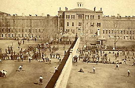 The rapid turnover made the organization of efficient work schedules difficult, and it was not until the third year that returns from the work shops reduced the maintenance costs below $1,000. It was also in that year that Brockway attended a series of revival meetings conducted by Charles G. Finney, who gave a new direction to his energies. Inspired by a new religious zeal, he organized and conducted animated Sabbath school services at the Workhouse. As recalled in his autobiography years later, the inmates quickly responded to Brockway's new approach, singing and praying with gusto, and he was able to discharge some of them with a warm sense of having contributed to their redemption, only to see many return a few weeks later with new sentences. Challenged by that second disillusionment, Brockway began to consider the merits of establishing a school to teach the three R's to the many inmates who lacked such skills. His annual reports in the late fifties gave greater attention to the inmates, classifying them as to nationality as well as the nature of their offense, and noting their lack of elementary knowledge and technical skills. In response to his annoyance over the short terms, the managers determined to change the name of the workhouse to a penitentiary in 1858 so that commitments for longer terms could be received under a new state law. By dint of careful management, the several workshops turned out products that netted a small surplus over the maintenance costs for the first time in 1860, but by this time Brockway . . . was absorbed by dreams . . . of indeterminant sentences that would permit a superintendent to hold inmates until they were reformed . . . When the managers of the newly constructed Detroit Workhouse offered to incorporate such a system there, Brockway left Rochester to assume its management. |
